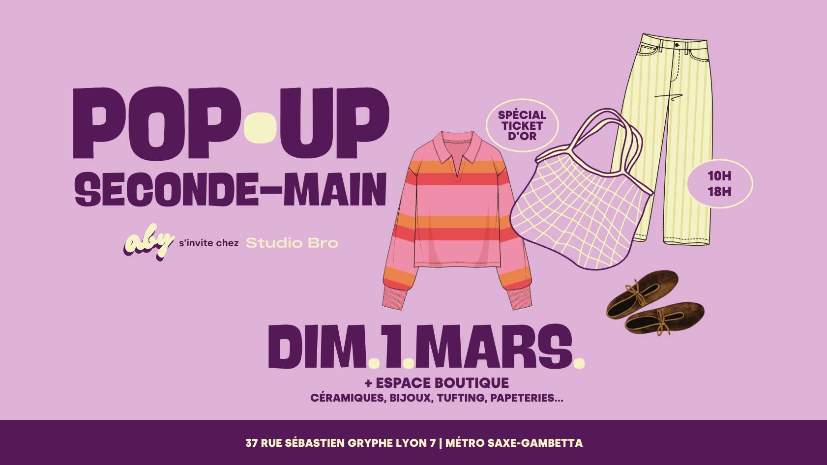 Avis aux chineurs : le pop-up du dépôt-vente Aby revient chez Studio Bro pour un dimanche 100 % seconde main à Lyon. Au programme, des remises jusqu’à -80 % sur une sélection affûtée, entre pièces vintage et pépites contemporaines. En bonus, on flâne dans la boutique entre céramiques, bijoux et papeterie stylée. Dimanche de 10h à 18h, c’est le plan feel good et responsable du week-end.