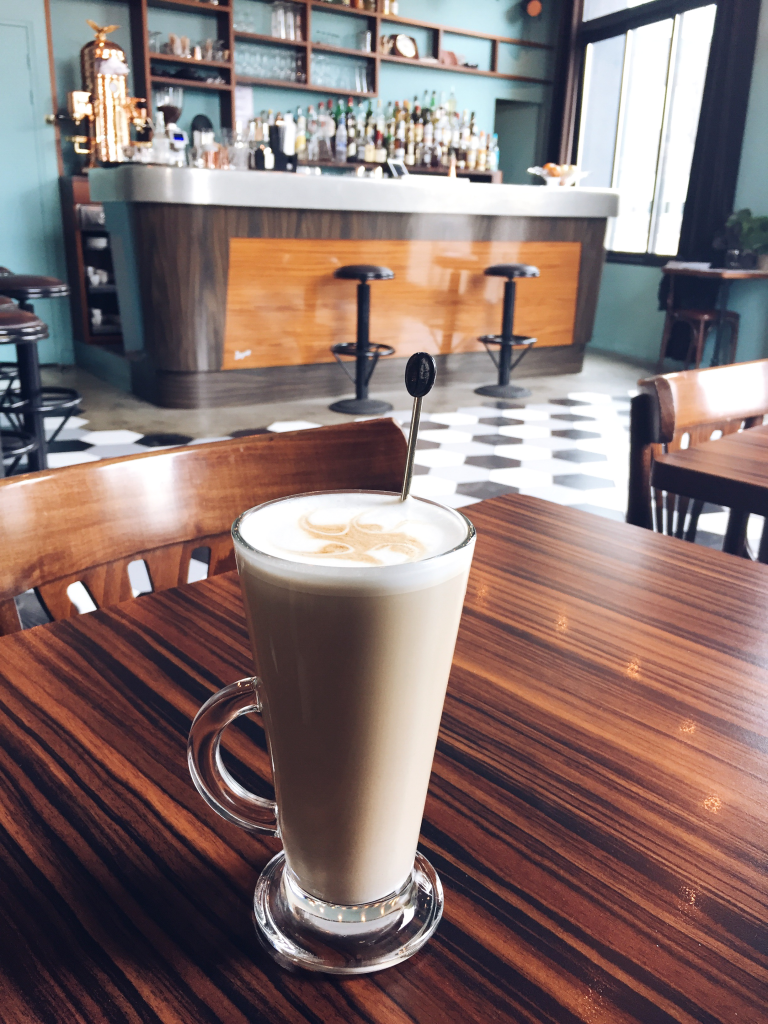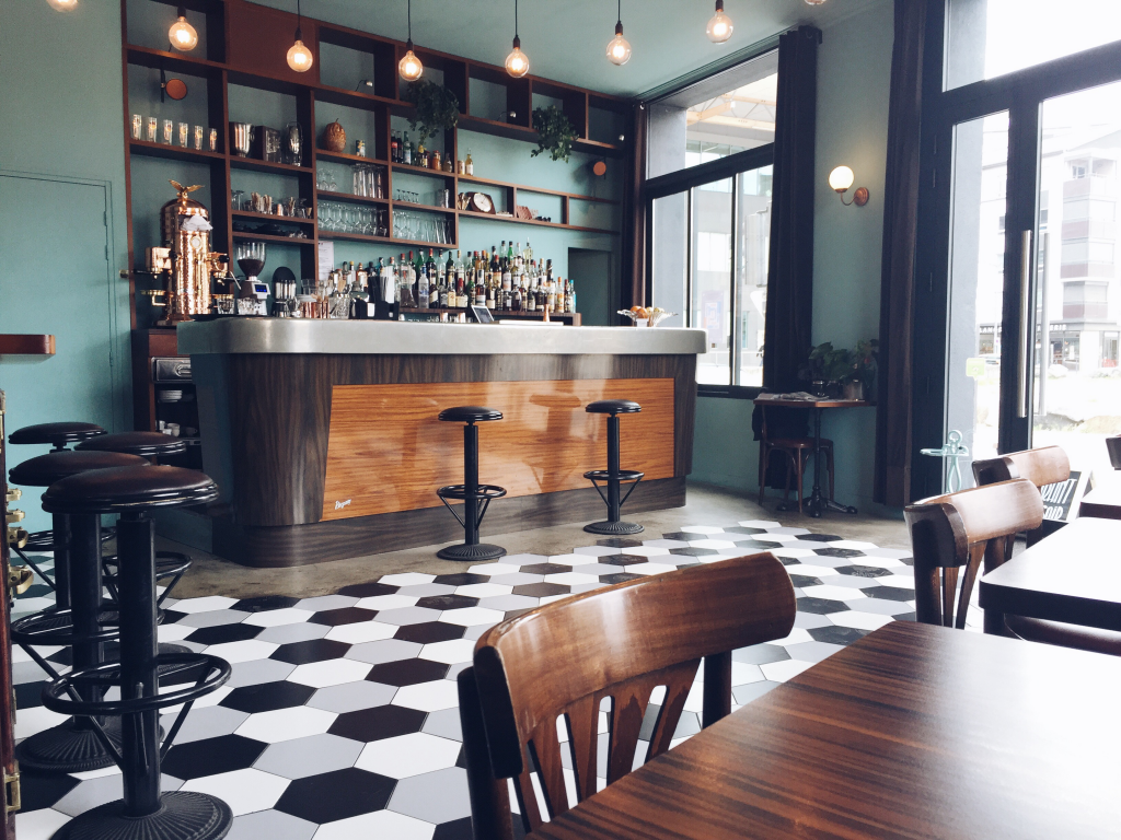 La porte à peine ouverte que la déco folle nous explose en pleine face. Ambiance chaude et feutré, papier peint tropical aux murs, damier au sol, banquettes bleues top-confort, tables en bois vintage et cadre ancien un peu partout… C’est magnifique et on s’y sent comme dans son salon (à condition que votre salon soit le plus beau de tous).