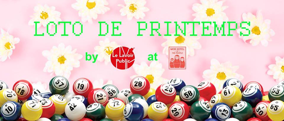 Pour célébrer l’arrivée du printemps (en avance), MOB HOTEL invite la fine équipe du Lavoir Public pour une soirée Loto endiablée. Animées par Mademoiselle Charby et Olivier Rey, les festivités promettent de suinter la bonne humeur. A la clé, de jolis lots à gagner, du bon son à kiffer et des souvenirs gravés. Le cocktail parfait pour clôturer la semaine.