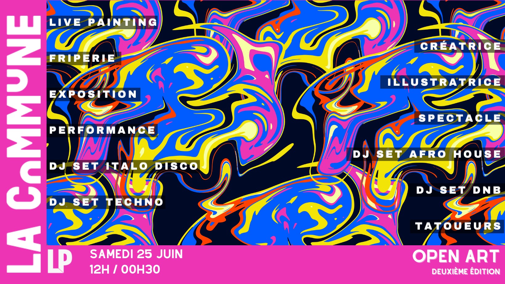 L’OPEN ART revient pour une deuxième édition ! Vous connaissez la chanson : rassembler en une journée un maximum de domaines artistiques et faire travailler différents artistes main dans la main. Au programme : mini village vintage pour faire plein de petites emplettes, arts visuels, théâtre, musique et drinks and food.