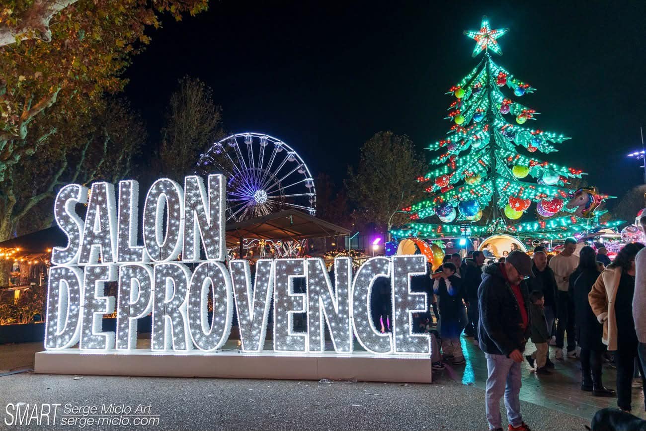 Le marché de Noël de Salon-de-Provence se tient du 29 novembre au 29 décembre, sur la Place Morgan. Il propose une ambiance très festive avec chalets artisanaux, gourmandises, concerts, mascottes et spectacles. La ville en met plein la vue avec deux feux d’artifice et trois manèges emblématiques : la Grande Roue de 35 mètres, le Sapin Magique et le traîneau du Père Noël. Pas de doute, Salon se transforme en scène de Noël grandiose.