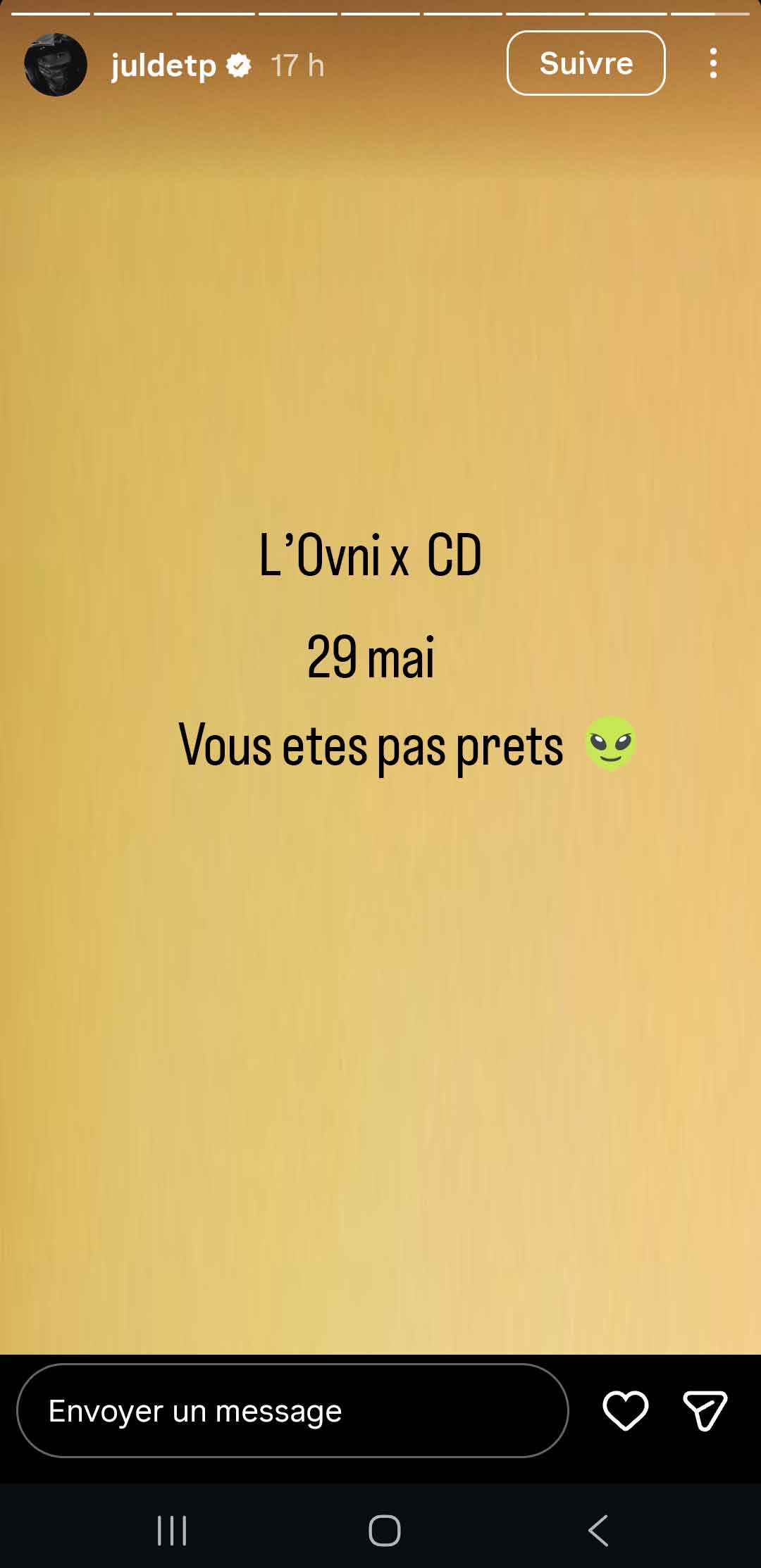 Alors que Jul prépare ses concerts au Stade Vélodrome les 29 et 30 mai prochains, Céline Dion s’apprête à faire son grand retour sur scène en France après plusieurs années d’absence liées à sa santé. L'annonce officielle est tombée ce lundi soir où la star canadienne a confirmé sur France 2 les spéculations autour de sa nouvelle tournée qui débutera donc le 12 septembre 2026 sur la scène de La Défense Arena, dans le cadre d’une résidence à Paris de plusieurs dates. Un retour en grande pompe qui a donné des envies à JuL, grand admirateur de la chanteuse. Sur son compte Instagram, le rappeur marseillais a publié une story énigmatique mardi soir laissant clairement sous-entendre un duo avec Céline Dion lors de son prochain concert au Stade Vélodrome. Résultat, les fans sont en feu ! Et tout le monde attend la confirmation de cette folle information !