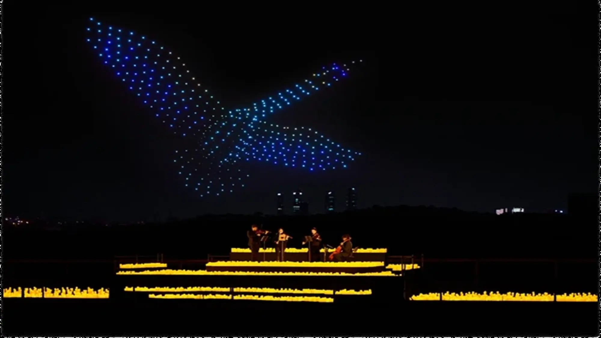 Imaginez une nuit douce, un ciel dégagé, loin de l’agitation urbaine. Au sol, 5 000 bougies diffusent une lumière chaude et vacillante, créant une ambiance intimiste presque hors du temps. Au centre de la scène, un quatuor à cordes interprète en live les plus grands chefs-d’œuvre de la musique classique. Et soudain, le regard se lève : 1 000 drones lumineux s’élèvent dans le ciel et commencent une chorégraphie aérienne parfaitement synchronisée avec la musique.