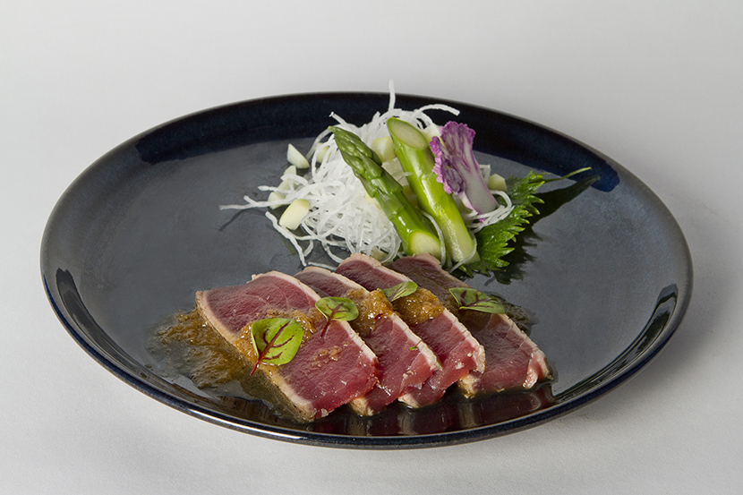 Des gambas obsi blue, concombre et algues marinées acidulées au filet de bœuf mi-cuit, sauce aigre-douce vinaigrée en passant par l’escalope de foie gras à la plancha sur riz de sushi, sauce teriyaki ou encore la demi-aubergine bio grillée au miso doux, chaque recette possède une subtile touche d’originalité.