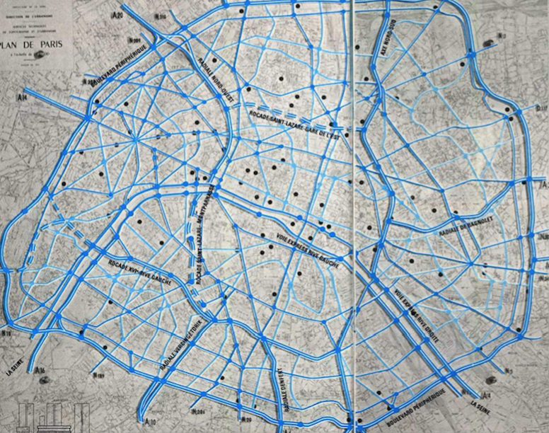 Ne me demandez pas qui a eu cette mauvaise idée. Au milieu des années 1960, le plan autoroutier voulait créer des autoroutes partout dans Paris pour faciliter les déplacements. Heureusement, le projet a été abandonné. On optera pour le métro.