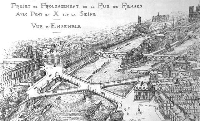 Le célèbre inventeur du rond-point, qui n’est autre qu’Eugène Hénard, a eu la brillante idée en 1902 de créer un pont en forme de X pour "améliorer" la circulation. Un projet qui, bien évidemment, à été rejeté par la Ville de Paris. On se demande bien pourquoi…