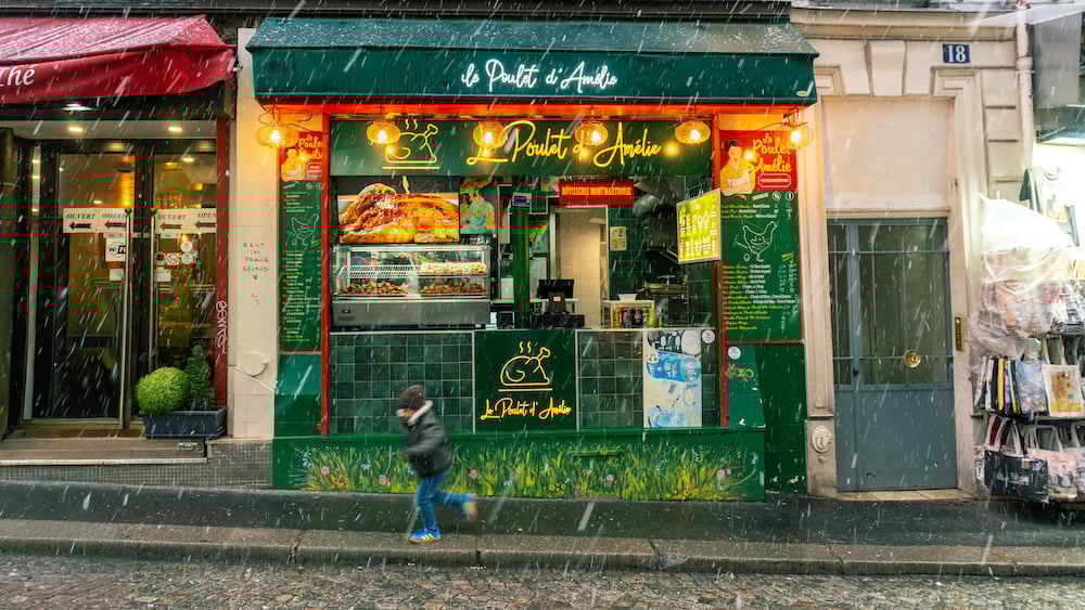 La Maison Rose under fresh snow, quietly judging everyone who said “Paris isn’t magical in winter?”