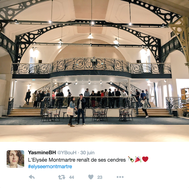 Ravagé par un incendie en 2011, seule la façade de cette salle - construite en 1807 et classée monument historique - était restée intacte. A sa réouverture en septembre, l'Elysée Montmartre aura retrouvé ses dimensions originelles, inspirées des archives du début du siècle dernier. Rassurez-vous, la salle de spectacle restera bien un lieu à vocation culturelle.
