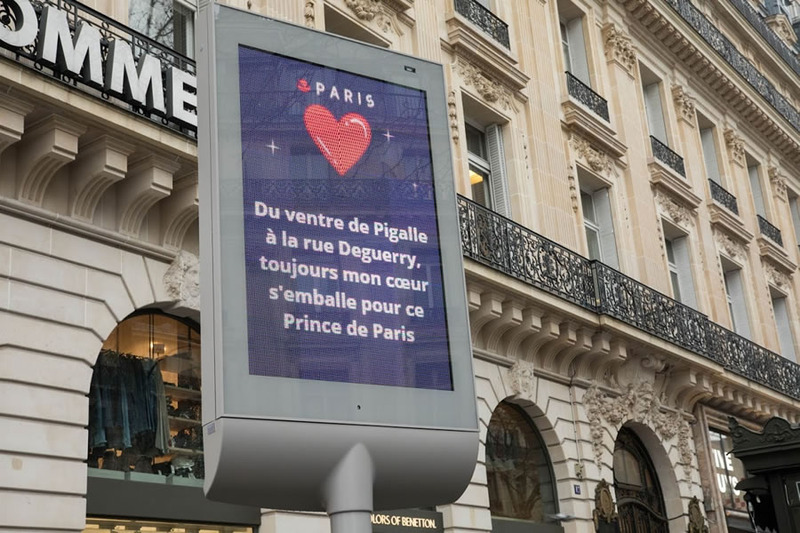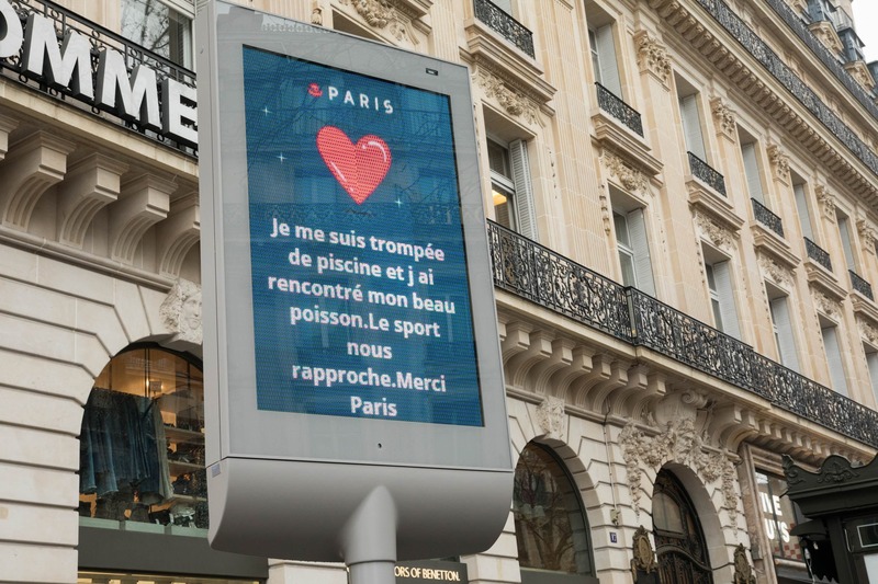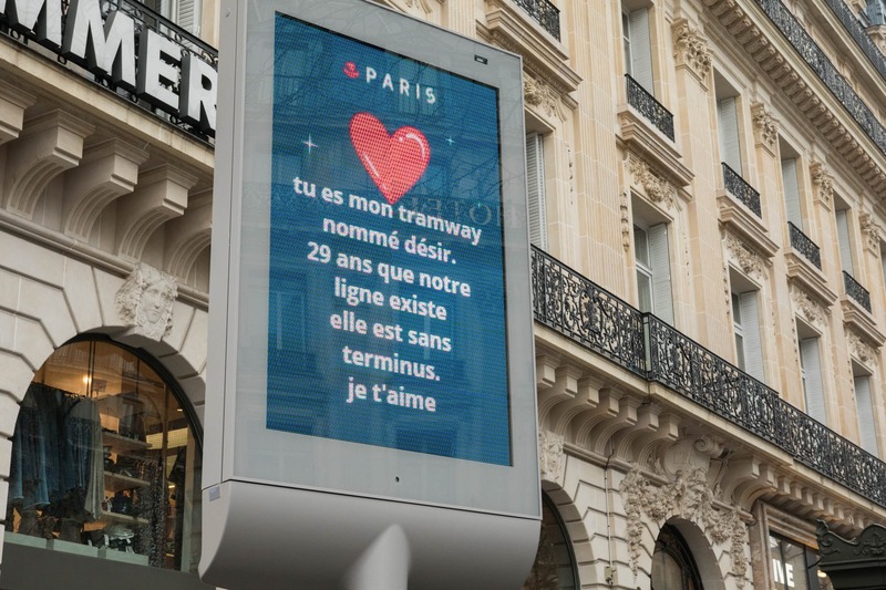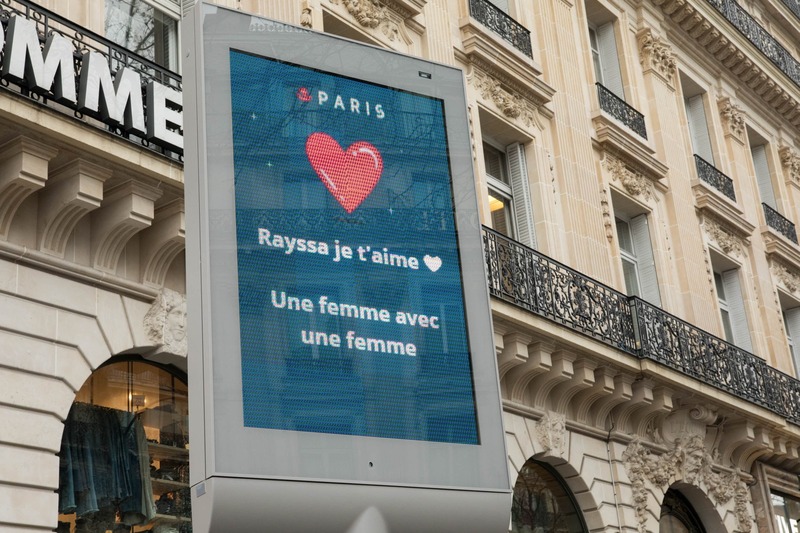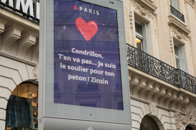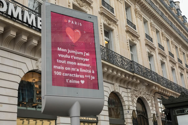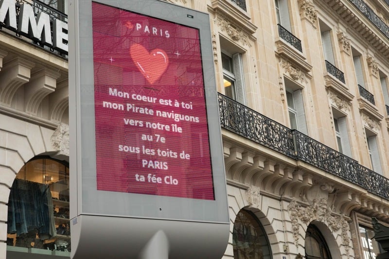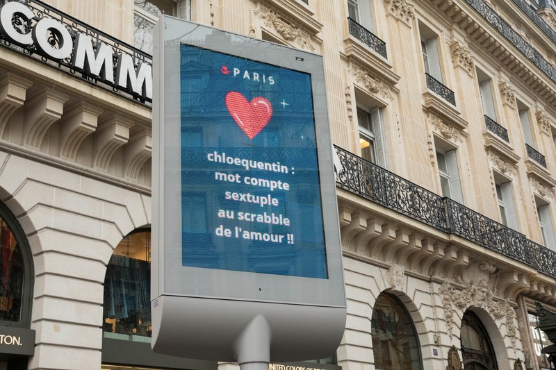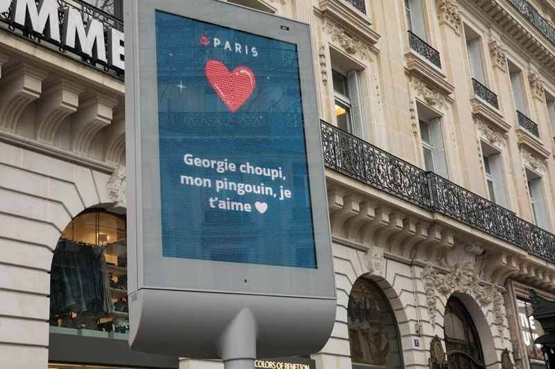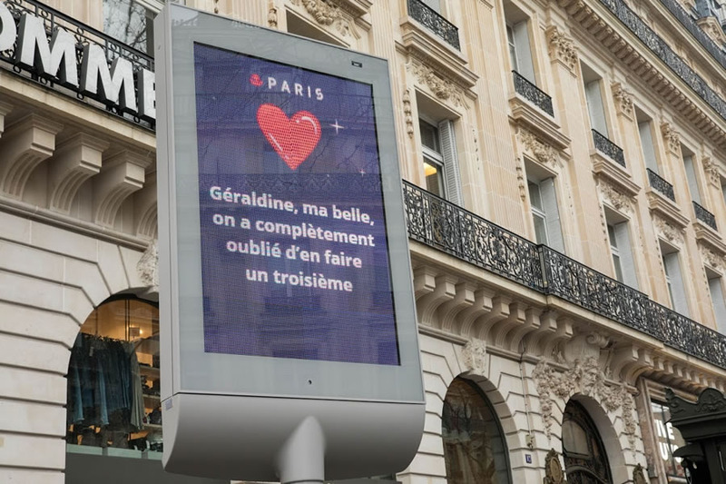 « Quand je suis seule et que je peux rêver, je rêve que je suis dans tes bras, je rêve que je te fais tout bas, une déclaration ». La Déclaration d'amour, certainement l'une des plus belles chansons d'amour, écrite en 1974 par Michel Berger pour une certaine France Gall. Mais vous n'avez pas à rougir, non. Vous aussi vous avez de la prose à revendre. Hier, 14 février, la Mairie de Paris diffusait sur 157 panneaux lumineux vos doux élans d'amour dans le cadre de leur opération "Vos mots d'amour s'affichent dans tout Paris". Demandes en mariage, ode à Paris, messages cryptés et poèmes du bitume : vous avez été bon les gars. Cœur sur vous.