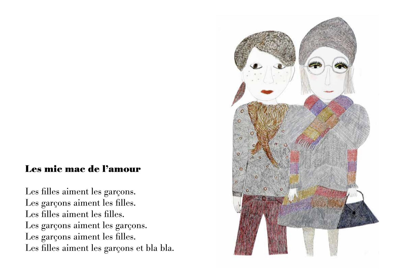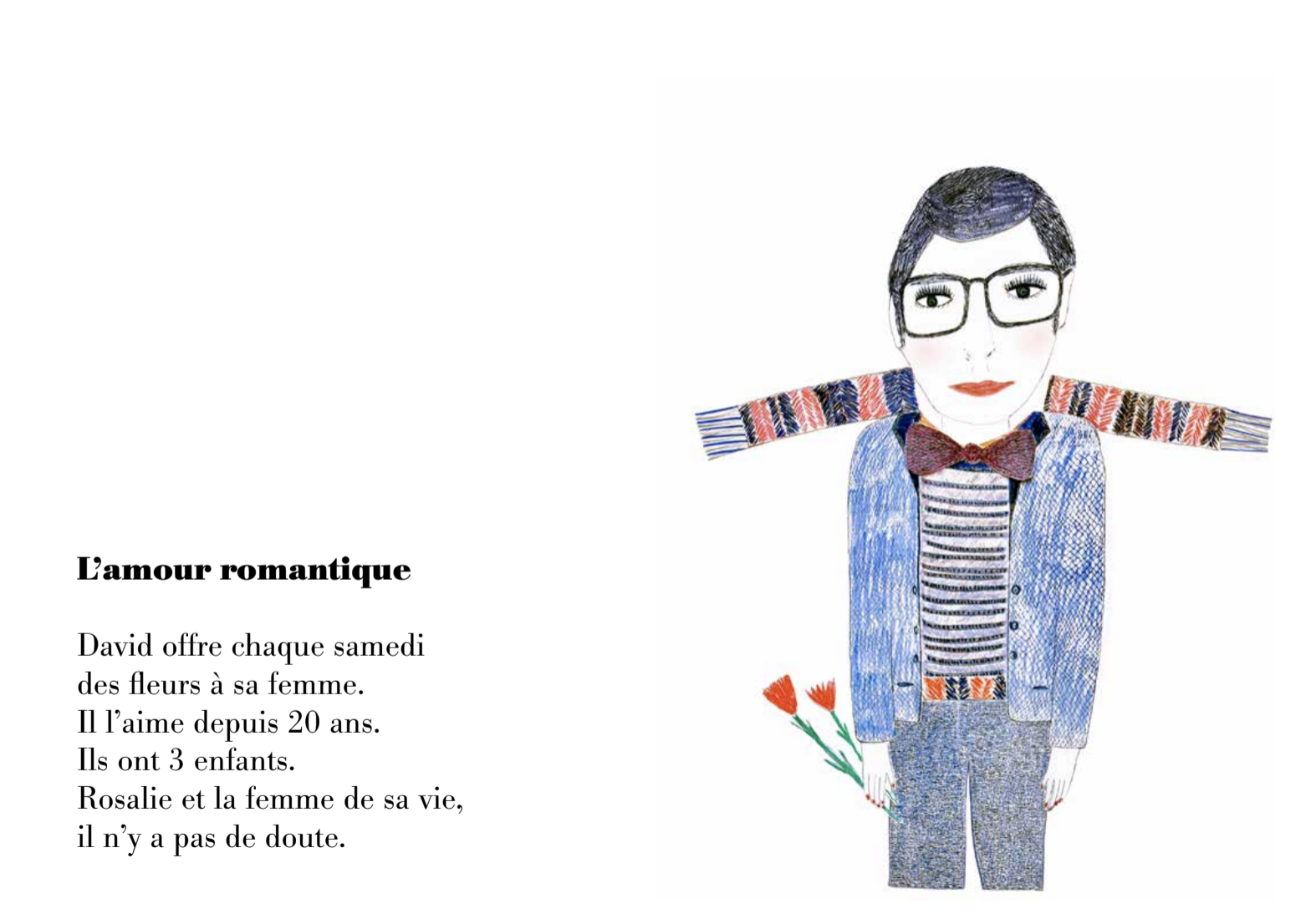 « Il n'y a quasiment que des gens que je connais, et ce qui est drôle c'est que souvent, ils ne se reconnaissent pas. » A travers son recueil d'illustrations Toi et moi, pourquoi on s'aime sorti d'abord aux Etats-Unis puis en Italie et maintenant en France, cette force de la nature voulait montrer qu'il n'y a pas une seule sorte d'amour. « Il y a des gens qui n'habitent pas ensemble, qui n'ont pas d'enfant et qui sont très amoureux. Il y a aussi des grandes amitiés, des gens qui vouent une passion pour leurs animaux de compagnie. Ce qui m'amusait, c'est de voir comment ils jonglent avec toutes ces possibilités. »