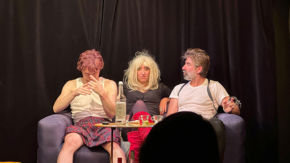 Sur scène, on retrouve Franck, un flic ripou et quelque peu aigri ; Bruno, son cousin mi-fou mi-plouc ; puis Mishka, la voisine russe, et accessoirement, la plus rusée du trio. Le topo ? Franck a caché une enveloppe (pleine de fric, évidemment) dans la salle de bain de Bruno. Il doit la rapporter à son commissaire, seulement voilà… Entre-temps, Mishka est tombée dessus et veut tenter de la piquer. Son plan machiavélique commence alors, à la poursuite de l’argent caché dans cet appart miteux. Et pour voler l’enveloppe, elle sort l’artillerie lourde : shots de vodka à foison, séduction à peine déguisée et peut-être même bien qu’elle sort un petit joint de sa poche. La question est : va-t-elle réussir à entourlouper les deux cousins ?