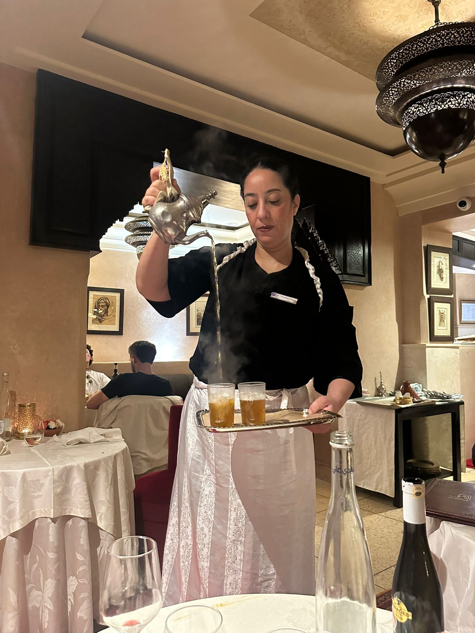 Le rituel du thé à la menthe, servi brûlant et à bonne hauteur, comme une tradition qui traverse les générations.©Jacques de la Chaise