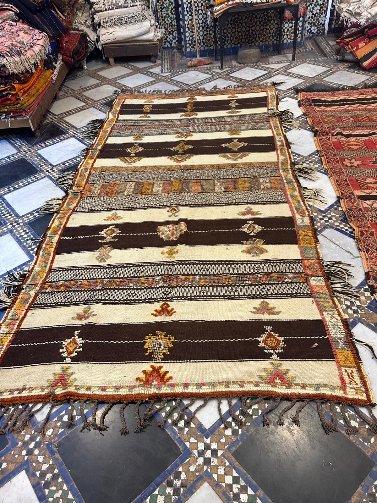 Tapis berbère tissé à la main, exposé dans une boutique de la médina ©Jacques de la Chaise
