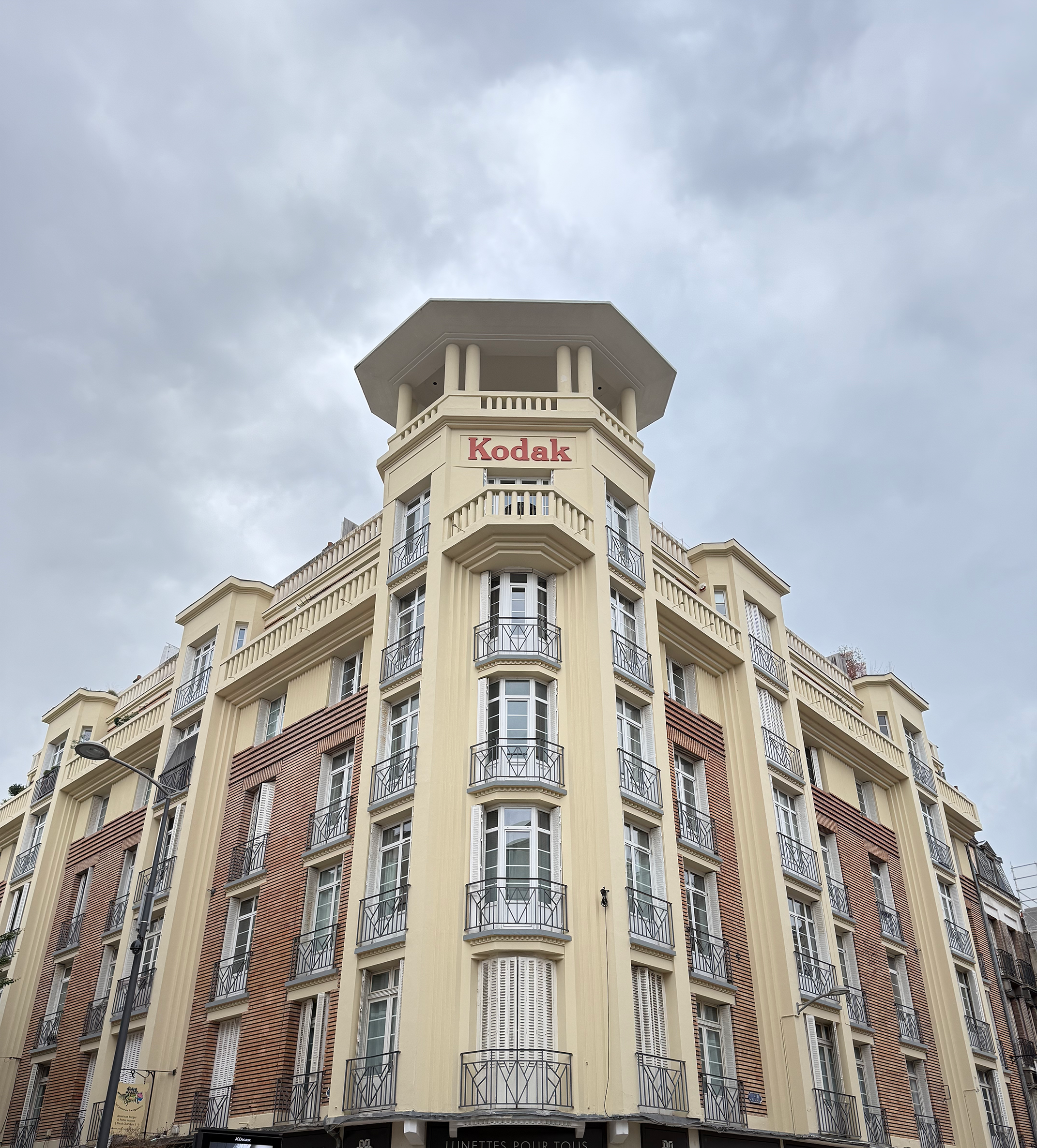 Il règne en maître sur la rue de Vesle : l’immeuble Kodak, à l’angle de la rue des Capucins, intrigue et fascine toujours autant touristes et habitants. Construit dans les années 30, c’est l’un des immeubles les plus élevés de la reconstruction, et le premier immeuble à Reims à être doté d’un ascenseur. Et il y avait vraiment, à l’époque, un magasin Kodak au rez-de-chaussée !