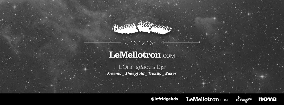 La soirée Groove Allégeance revient, ce soir, pour son second volet. Dernière fiesta de l'année, elle réunira L'Orangeade et des mélomanes aguerris tout droit venus de Paris : Le Mellotron. L'ultime soirée groovy de l'an 2016 fera vibrer le Fridge dès 22h. En piste !