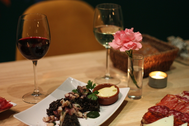 Aux heures heureuses, la pinte d’Estrella Galicia avec tapas est à 6€ tandis que les verres de vins (blanc, rouge ou rosé) sont à 5€, également accompagnés de tapas !