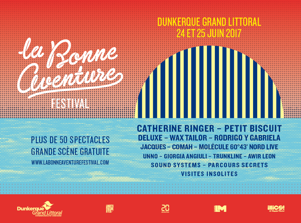 Il existe un endroit au sommet des Hauts-de-France où l’on danse jusqu’à l’aube face à la mer, en bikini avec sa petite laine sur le dos, pieds nus ou en bottes à paillettes. Un dancefloor de sable frais, où l’on ouvre ses oreilles, on se laisse porter, tee-shirts contre paréos, tous abreuvés de rythmes électrisants sous le soleil et les étoiles. Un ch’ti paradis où la Mer du Nord se recharge, ondule et s’étourdit, où les kitesurfs se trémoussent grisés par les vents insolents d’une fête qui dure deux jours et deux nuits : Le festival de la Bonne Aventure.