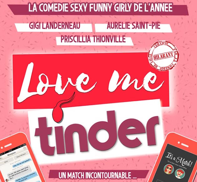 C'est sexy, c'est funny, c'est girly, c'est Love me Tinder, la comédie du moment. Parce qu'avec ce temps qui vire au gris, on a plutôt le moral dans les chaussettes, et donc une bonne tranche de rire à la Comédie de Lille nous ne fera pas de mal. Pour vous donner envie, voici l'histoire : "Deux demi-soeurs hautes en couleur, au caractère bien trempé, décident de faire découvrir les rencontres par internet à leur copine. Elles lui expliqueront comment éviter les gros lourds, comment ne pas confondre un sexfriend et un futur mari mais surtout comment oneshoter, dater, liker, matcher, zapper, swiper ! Ces trois funny girls sont unies pour le meilleur et surtout pour le rire !" Un spectacle entier sur un phénomène Internet 2.0, mais à voir sur scène.