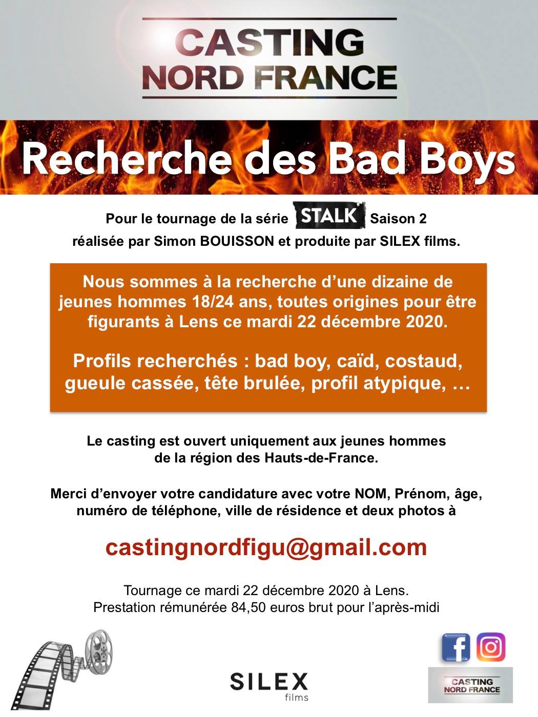 Tu connais un bad boy, caïd, tête brulée, branleur... ? Ou peut-être l'es-tu toi même ? Good news, pour les besoins du tournage de la série STALK, un casting est lancé pour trouver des figurants masculins EXCLUSIVEMENT des Hauts-de-France ! Bien sûr, le job est rémunéré.