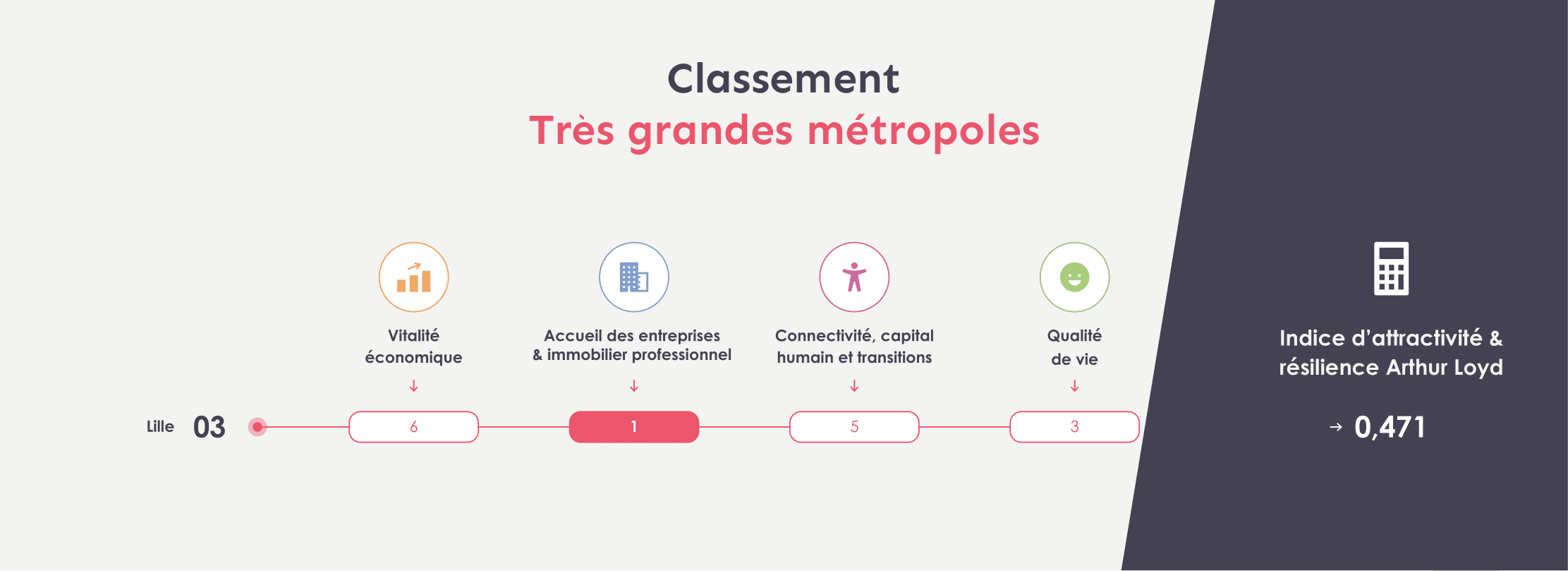 Et notre qualité de vie perso dans tout ça ? Oui, ici encore Lille est une des meilleures ! Plusieurs raisons à ça : les prix de l'immobilier sont attractifs et nous avons de grandes offres de soins. Ajoutez à cela une faible exposition aux problèmes climatiques (pour rappel, cet été, alors que la canicule faisait rage, il faisait à Lille 10 degré de moins que partout en France) ainsi qu'à la pollution atmosphérique. Le baromètre Arthur Loyd met aussi en avant le fait qu'il y ait "peu" de bouchons pour entrer ou sortir de Lille comparé aux autres métropoles.