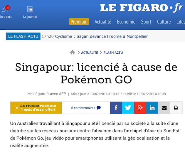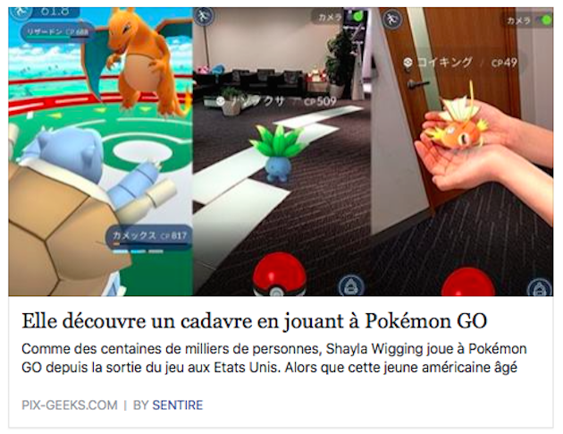 Là, on est plutôt d'accord. Alors que de nombreux médias sortent leur guide pour rester en sécurité en jouant à Pokémon, d'autres relayent des informations tantôt tragiques tantôt drôles liées au jeu.