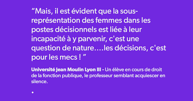 Bonjour, ici le sexisme. Vous pensiez que j'étais présent chez les gens peu éduqués. Eh bien non ! J'entre également dans le cerveau des universitaires. Comme quoi, on peut être bardé de diplômes et très bête !