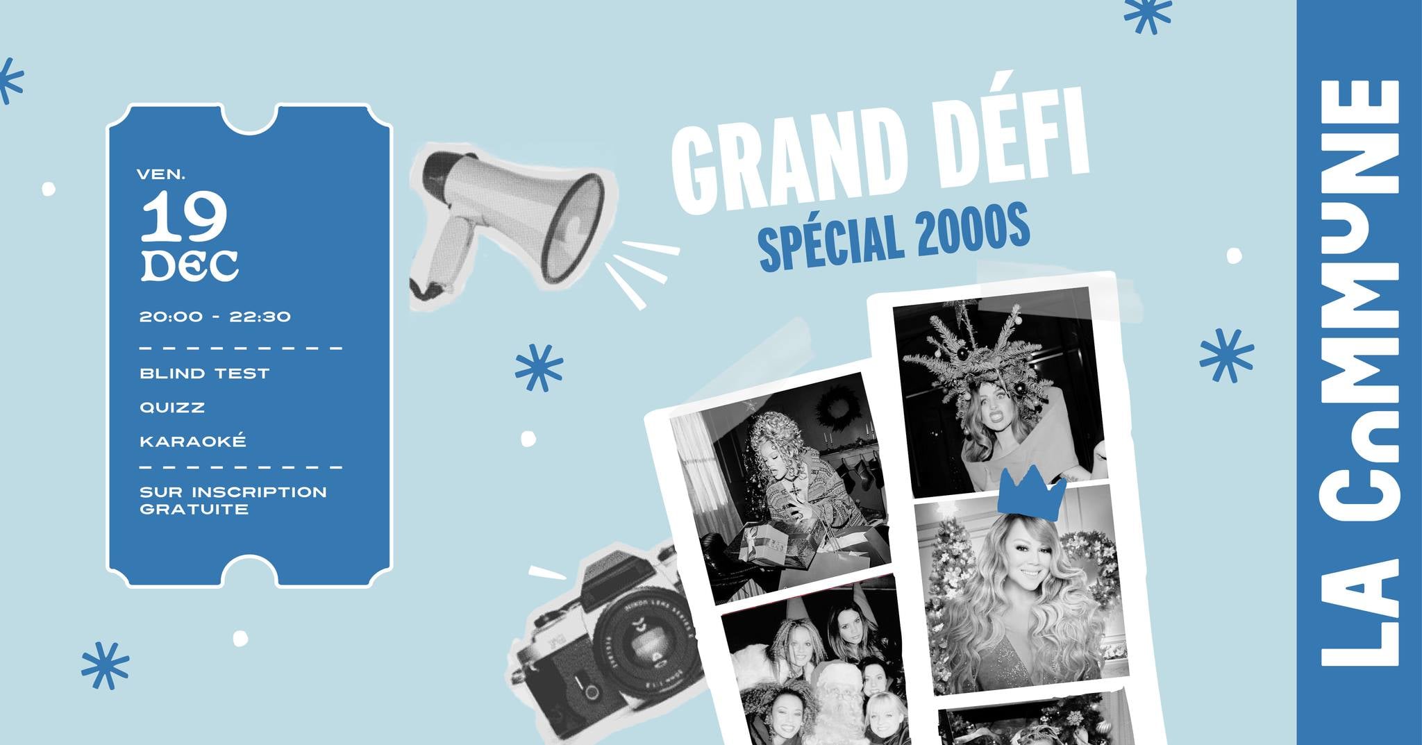 Ce vendredi, La Commune et Club Confettis vous replongent direct dans les années 2000 avec un grand défi 100 % nostalgie. Blind test, karaoké, chorés cultes et quiz pop culture rythmeront la soirée pour départager les plus grands fans de Britney, Usher ou des Pussycat Dolls. Ramenez votre team, tentez de gagner des lots et prouvez que le Single Ladies est toujours dans vos jambes. De 20h à 22h30, entrée gratuite.