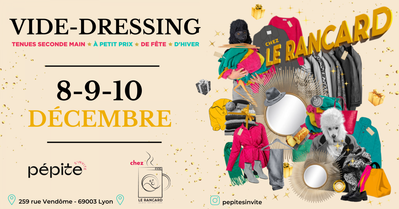 À l'occasion du week-end de la Fête des Lumières, onvous conseille vivement de vous faire un petit week-end shopping afin de dénicher quelques pépites à petits prix chez Le Rancard. Du vendredi 8 au dimanche 10 décembre, un grand vide-dressing où se côtoient des tenues d'hiver et de fête, des vêtements, chaussures et accessoires de seconde main à des tarifs incroyables sera à votre disposition. Profitez d'une expérience de shopping unique dans un espace convivial, avec des cabines d'essayage, un service de paiement simplifié, et un espace salon de thé pour vous détendre.