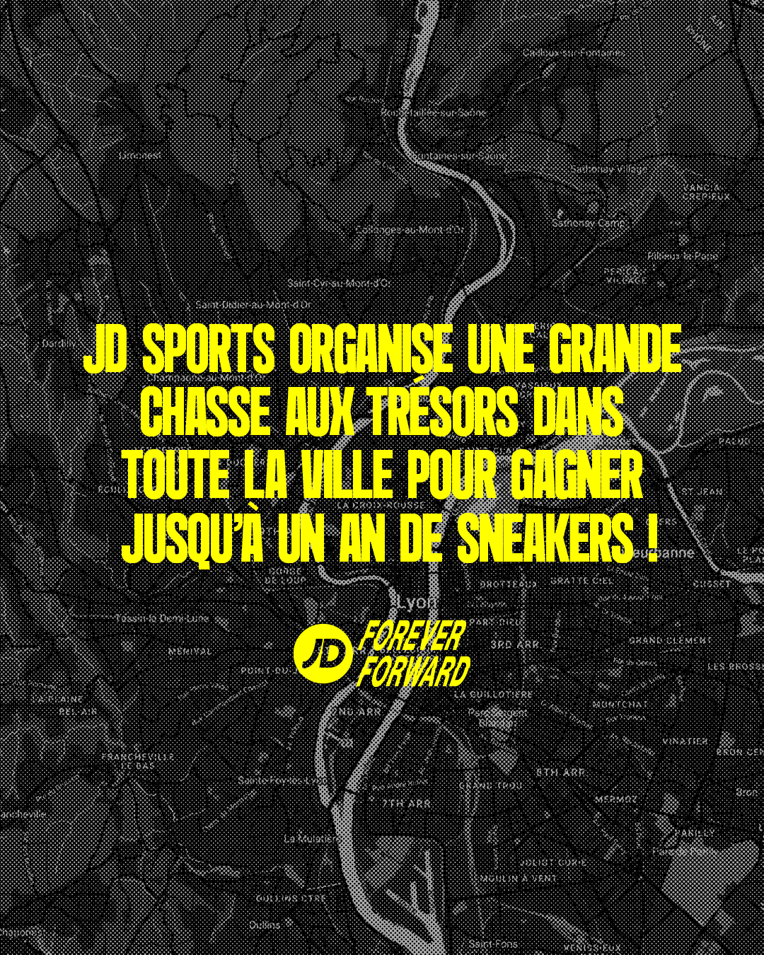 Ouvrez l'œil et partez à la chasse aux cartes cadeaux ! Du jeudi 7 au dimanche 10 décembre, le temple des vêtements et baskets sportswear JD Sports organise une grande chasse au trésor dans Lyon. À la clé : 1 an de sneakers gratuites et des cartes cadeaux d'une valeur de 50€ à utiliser dans tous les JD Sports de France. Le concept est simple : des affiches sont dispersées sur les murs de la ville, associées à un QR Code phosphorescent à scanner pour découvrir si vous avez gagné ou perdu. À vos marques...prêts...TRAQUEZ !!! 👟