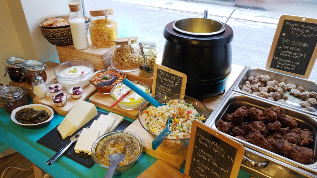 Au niveau des plats, vous ne saurez plus où donner de la tête face à une carte quelque peu aguicheuse. Ici, pas de burgers ou de kebabs, vous vous remplirez la bedaine à coup de pita souvlaki, frites, brochettes de poulet mariné aux agrumes, tzatziki, brochettes de féta et légumes grillés, salades et on en passe ! Comptez entre 8,50€ et 10,50€ pour un menu et le tour est joué.