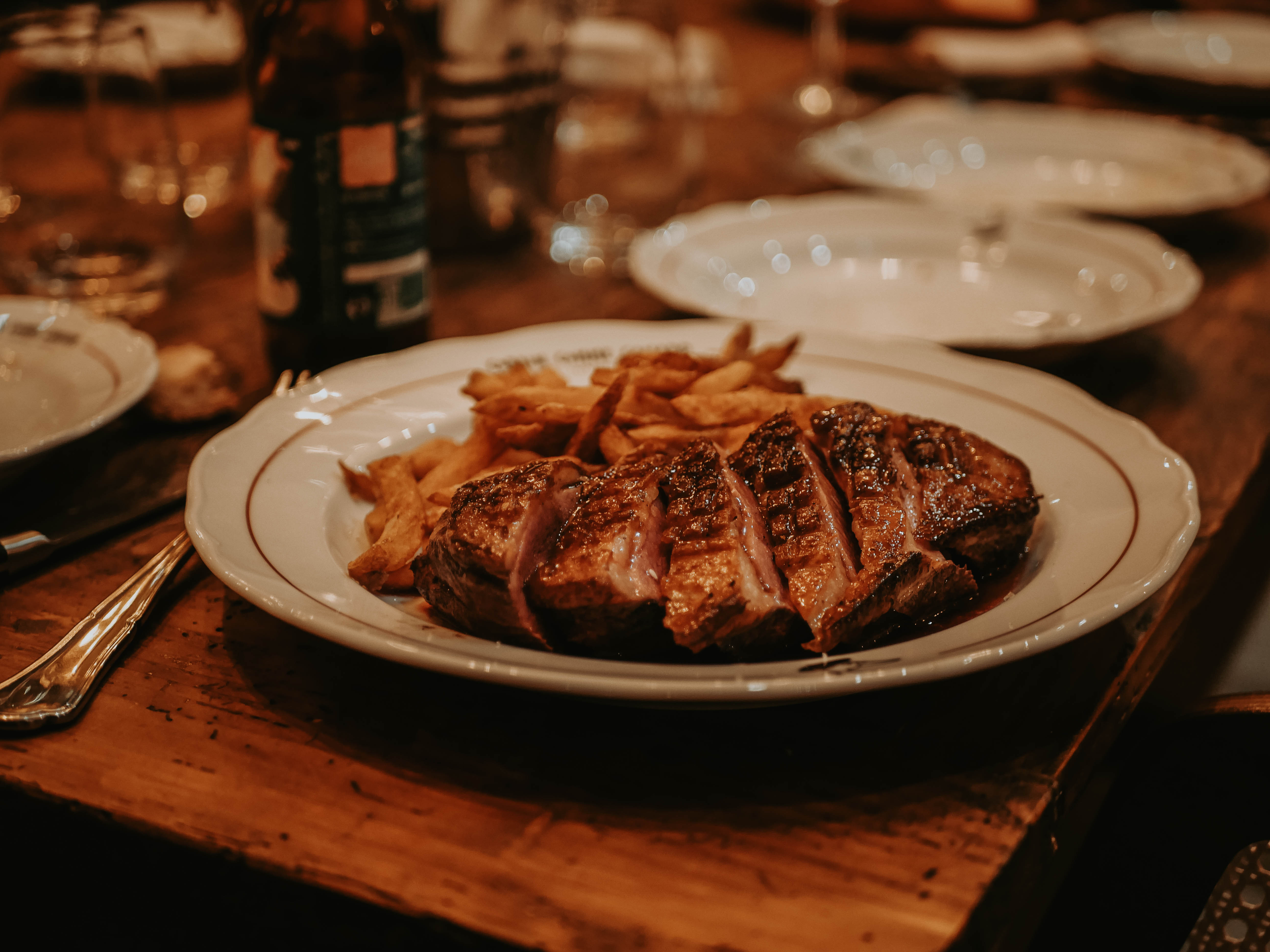 On tient sans doute le restaurant de viande le plus authentique et pittoresque de Lyon. Carnegie Hall, c’est une plongée dans un cadre intemporel qui semble tout droit sorti d’un film d’antan. Installé près du Stade de Gerland, Carnegie Hall offre une immense salle où la viande est absolument partout. Spécialiste du veau, du bœuf, de l'agneau et même du cheval, l’adresse traverse les époques sans prendre une seule ride et continue de perdurer au rayon des meilleurs restaurants de viande de Lyon.