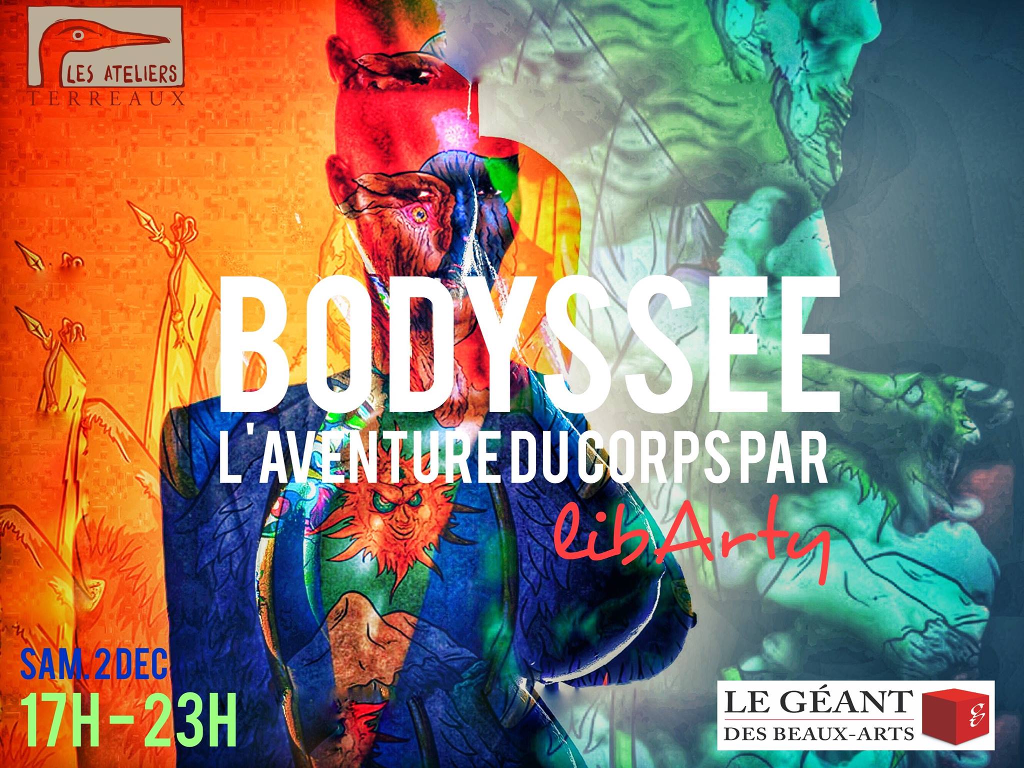Dans un espace atypique entièrement dédié à l'art, libArty vous convie dans son aventure du corps, BODYSSEE, ce samedi 2 décembre à partir de 17h. Un moment d'exception, convivial et festif, organisé autour du graff, de l'expression corporelle, du body painting, de la photo, du vidjing, de la peinture, du slam, du chant lyrique, de la danse et des musiques urbaines.