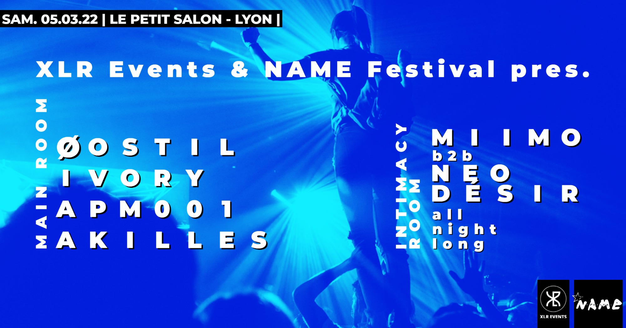 Pour nous faire danser jusqu’au bout de la night, les copains de XLR Events s’associent à la fine équipe du NAME Festival. Ensemble, ils convient trois artistes de folie qui feront leurs premiers pas à Lyon au Petit Salon : le pilier de la techno-mélodique Øostil, l’immense producteur Ivory et la musique immersive d’APM001. Un line-up de dingue pour une soirée mémorable.