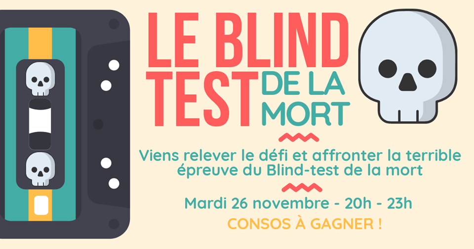 Tu te penses incollables en Blind Test ? Viens montrer tes skills pour le Blind Test de la Mort des Arpenteurs ! Pour donner sa chance à tout le monde, il y en aura vraiment pour tous les goûts… Donc pas d’excuse pour se faire laminer, désolés !
