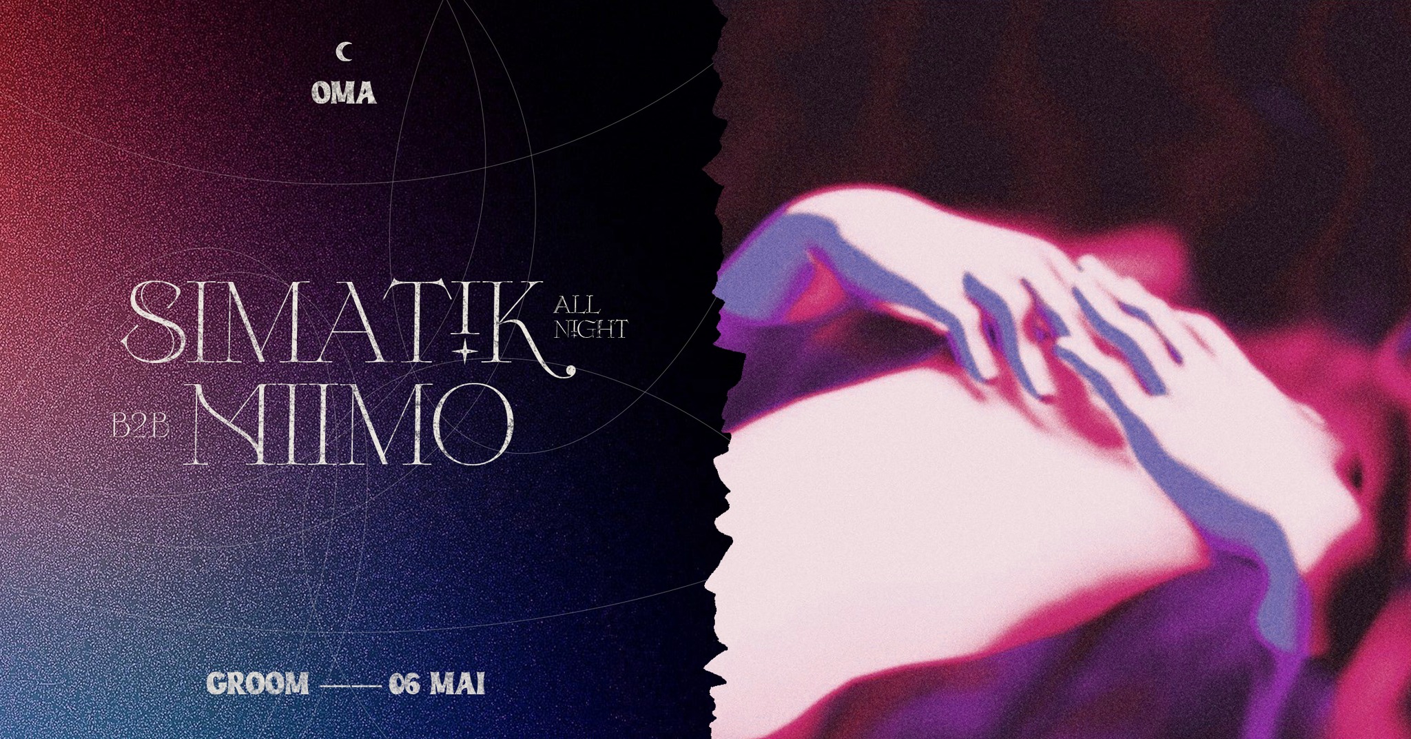 Ce vendredi, le collectif OMA fait sa grande première dans l’antre du Groom. Et pour célébrer l’occasion, la team fait le job en confiant les platines à Simatik et Miimo pou un b2b qui devrait combler de bonheur les grands fêtards que vous êtes. Le moyen idéal de bien lancer les festivités du week-end et balayer cette longue et éprouvante semaine de taf.