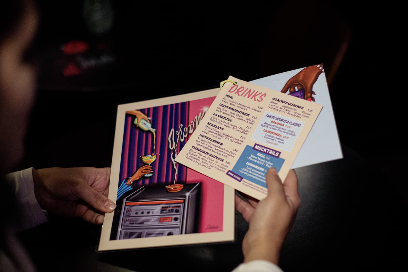 Pour les amoureux de boissons que vous êtes, la carte du Groom propose un large choix de cocktails classiques, de recettes création mais aussi de bières, cidres, spritz, de softs et tout un rayon sans alcool disponible toute la nuit - tandis que des collaborations sont mises en place avec des artistes pour le design des cartes. En ce moment, on est sur une carte créée par la parisienne Dolores Noire. Pour accompagner les boissons, la maison propose de généreuses planches de charcuterie et/ou fromage à partager.