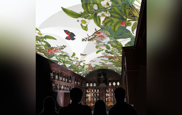 Entièrement restaurée, l’ancienne apothicairerie proposera notamment une grande projection artistique rendant hommage à l’art de la cuisine. Sur l’image, le meuble de bois abritait à l’époque des dizaines de pots remplis d’herbes aux vertus soignantes et apaisantes. L’objectif suprême de cet espace : donner l’eau à la bouche à travers un voyage des sens.