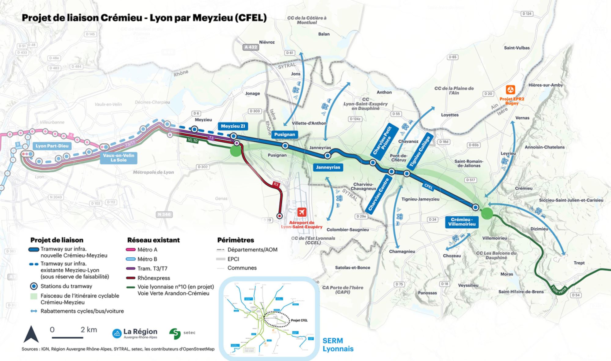 © Setec - Le tracé du futur tramway reliant Crémieu à Lyon.
