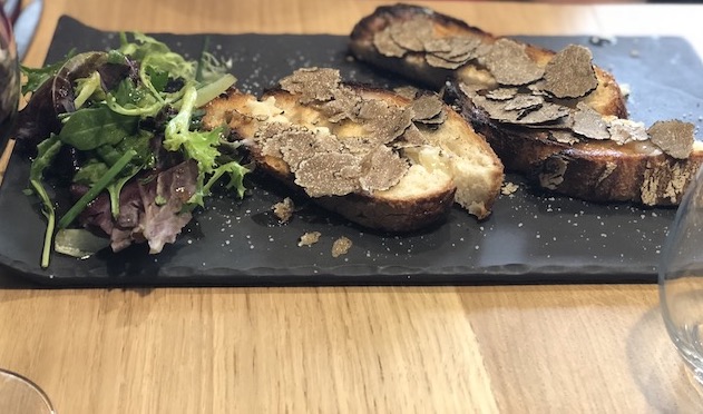 Ce qui frappe, à peine l’entrée d’Artisan de la Truffe franchie, c’est l’odeur écrasante de truffe. Celle-ci annonce la couleur : le champignon – et en l’occurrence ici, la truffe d’été – vous accompagnera du début à la fin de votre repas.