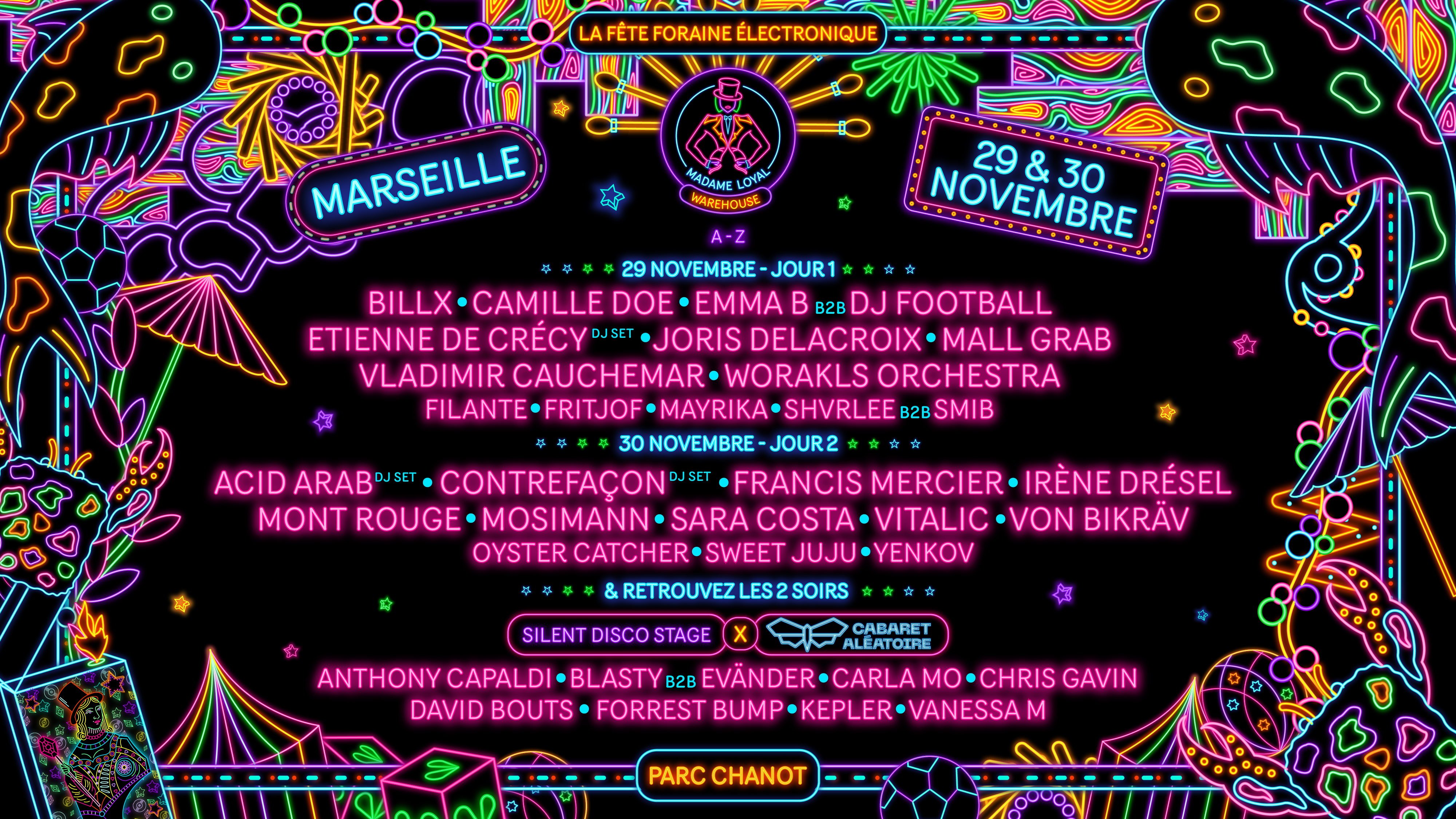 La célèbre fête foraine électro Madame Loyal s'apprête à enflammer le Parc Chanot ce vendredi 29 et 30 novembre 2024 pour une édition exceptionnelle de 2 jours avec plus de 20 000m2 de dancefloor aménagés, de quoi fêter la fin de la saison des festivals en beauté.