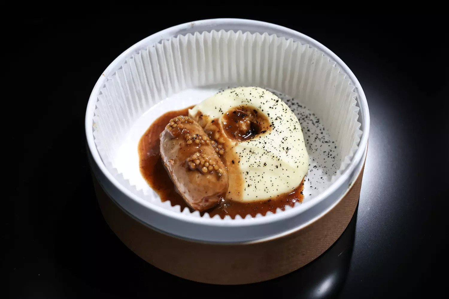 Au menu de cette dégustation : un concept étonnant puisqu'il s'agit d'un menu axé uniquement autour de la saucisse, de l'entrée au dessert !