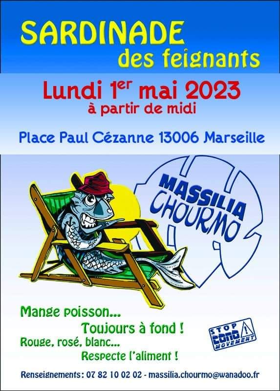 Venez vous régaler en famille ou entre amis au coeur du 6e arrondissement de Marseille grâce à l'équipe de Massilia Chourmo ce lundi 1er mai ! Pour célébrer en tout convivialité la « fête du travail » c'est sardinade des feignants où sardines et Dj seront au RDV.