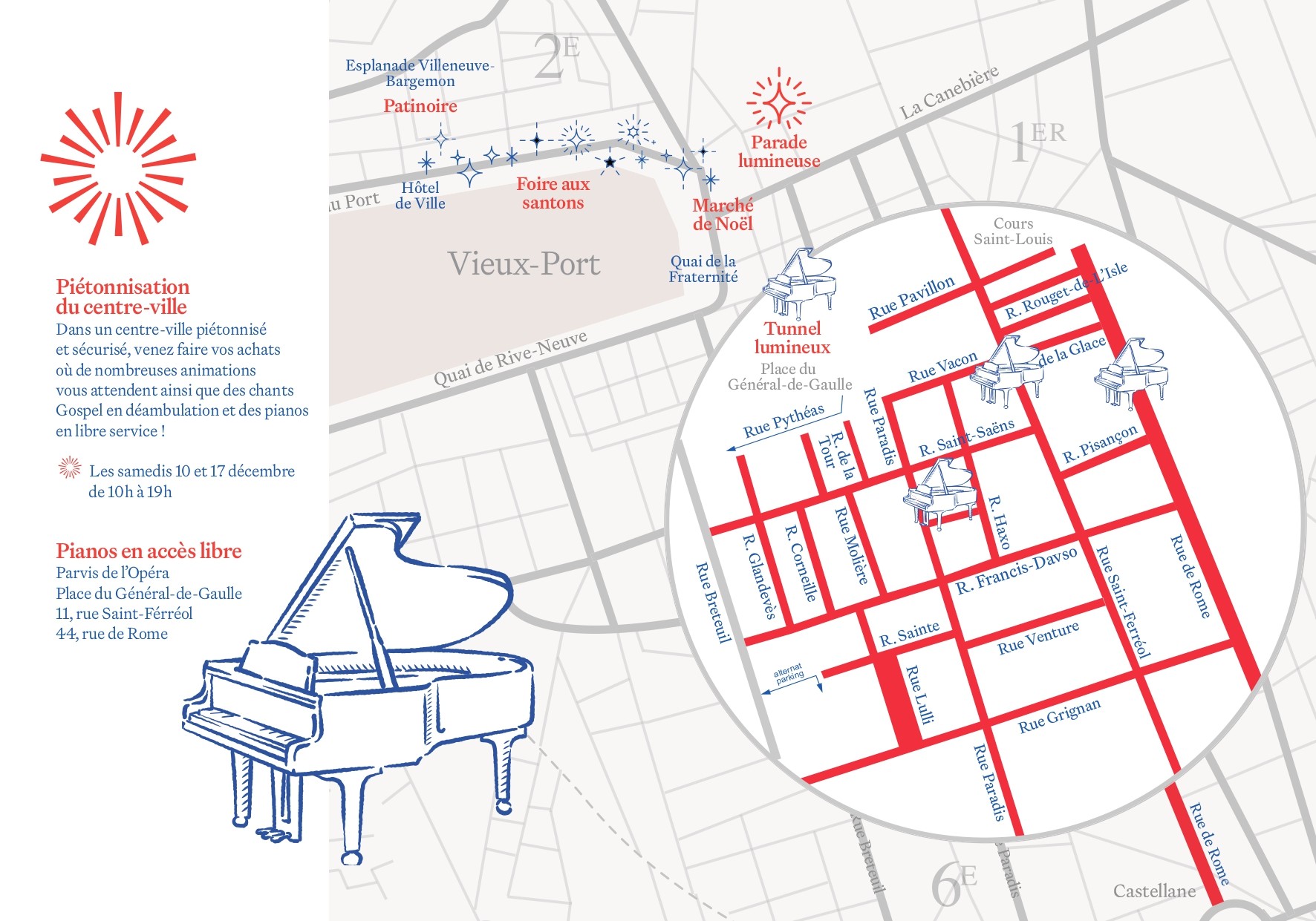 Et si vous êtes plus fans de musique que de sport, rendez-vous le samedi 17 décembre à 16h45 devant l’Hôtel de Ville pour un DJ set 100% artistes marseillais, en même temps que des projections de dessins animés Disney sur la façade de la mairie. À partir de 17h30, parade lumineuse, distribution de bonnets de Noël et spectacle chanté et dansé seront de la partie !