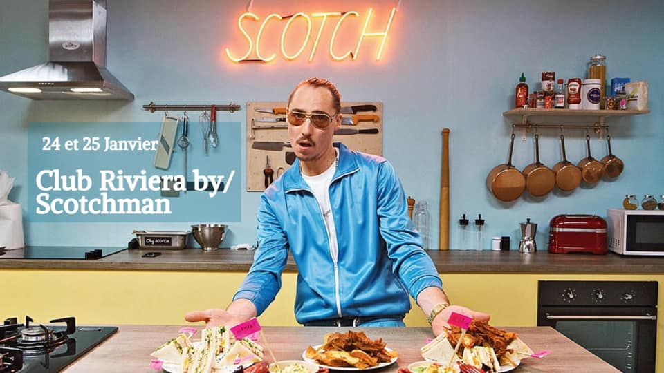 Scotchman, le plus déjanté des chefs, s’empare des cuisines et de la salle du Club Riviera le temps de 2 soirées de folie. Pour info et si vous ne le connaissez par encore Scotchman, c'est un cuistot hors pair qui vous apprend à cuisiner avec les moyens du bord sur Youtube. Pas besoin de connaître tous les petits producteurs de la région, ni d'avoir une cuisine dernier cri pour cuisiner très très bien. Il suffit de regarder la chaîne Youtube de Scotchman ou venir à la soirée.