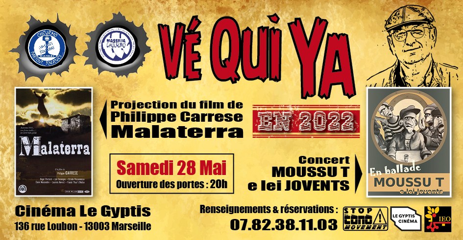 Alors l'équipe vous propose une projection autour de ces 2 chourmos (=bandes) résolument anti-centralistes, fiers de leur ville, utilisant tout deux un occitan décomplexé au cinéma le Gyptis ce samedi.