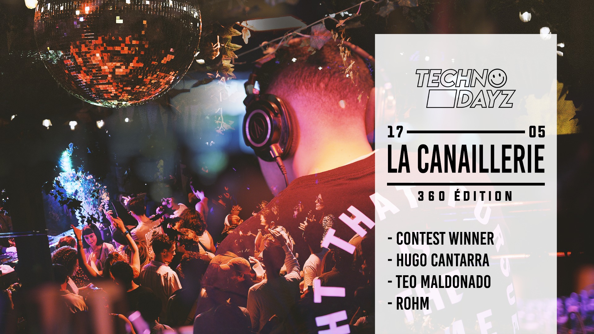 « La Canaillerie 360 », c'est un tout nouveau concept sur Marseille proposé par le collectif Techno Dayz. La Régie de DJ's sera en plein milieu du Dancefloor, directement sous la Pergola de façon a être encore plus proche de son public et avoir une immersion 360°. En d'autres termes, le son de HUGO CANTARRA, CONTEST WINNER, ROHM et TÉO MALDONADO se propagera dans le club comme une onde de choc et ça pour le plus grand bonheur des amateurs de son électronique.