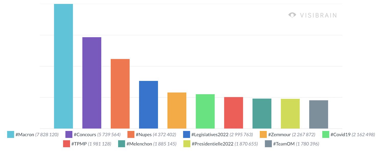 Les supporters de l'OM, on vous voit, extrêmement actifs dans les gradins, vous ne laissez pas tomber les joueurs et ça même quand il s'agit de digital ! Une véirté confirmée par une étude de Visibrain, l'outeil de veuille des réseaux sociaux qui a indentifié les 10 sujest et # les plus utilisés sur Twitter en 2022. Et si les sujets politiques sont quasi omniprésents dans le classement (présidentielle oblige), le hashtag #TeamOM se positionne à la 10ème position de ce classement.