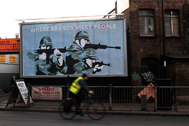 Hogre, c'est l'artiste italien qui fait couler de l'encre dans les rues de Londres pour ses œuvres de « subvertising », telles qu'il les appelle. Ces fausses publicités satiriques et grinçantes dénoncent la dictature agressive des campagnes de communication et le culte de la consommation.