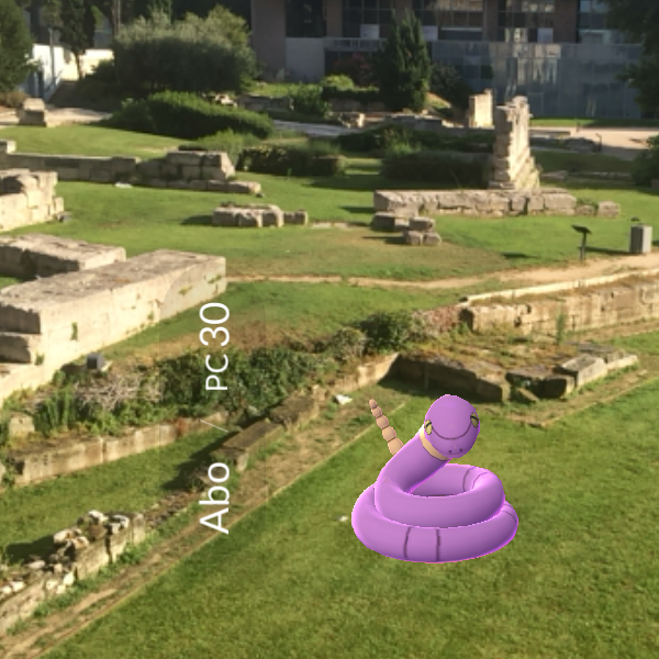 Au parc des vestiges, un abo se dore au soleil entre deux ruines grecques. A côté de nous, on remarque deux autres dresseurs. On se dépêche de capturer le serpent avant qu'il ne s'échappe.