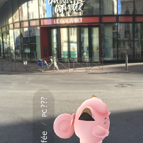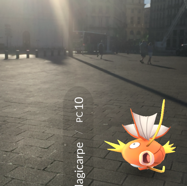 Toujours pas de ratatat en vu sur la Canebière, mais des roucools se mêlent aux vrais pigeons. Rien de très folichon, mais ils nous permettent de remplir le pokédex et d’atteindre un nouveau niveau.
